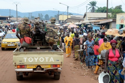 Patrouille de la Force multinationale des Etats d'Afrique centrale (Fomac) le 20 juillet 2013 à Bangui (AFP / Xavier Bourgois)On passe sur ce colonel au grand cœur que tout le monde appelle «colonel Superman», et on enchaîne sur d'autres qui se sont choisis des sobriquets plutôt sympas: le général Ben Laden a même fait faire un tampon encreur à son nom.