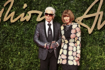 Karl Lagerfeld et Anna Wintour aux British Fashion Awards, à Londres, le 23 novembre 2015. (AFP / Jack Taylor)Karl prolonge un peu la conversation. Puis il me raccompagne. Arrivés devant la frange stricte de la Wintour, il me présente. « Vous connaissez évidemment Gersende ? » Confusion de la dame, qui n’a aucune raison de s’intéresser à l’existence de la petite main de l’AFP qui couvre la mode. Karl jubile, ravi de son effet.